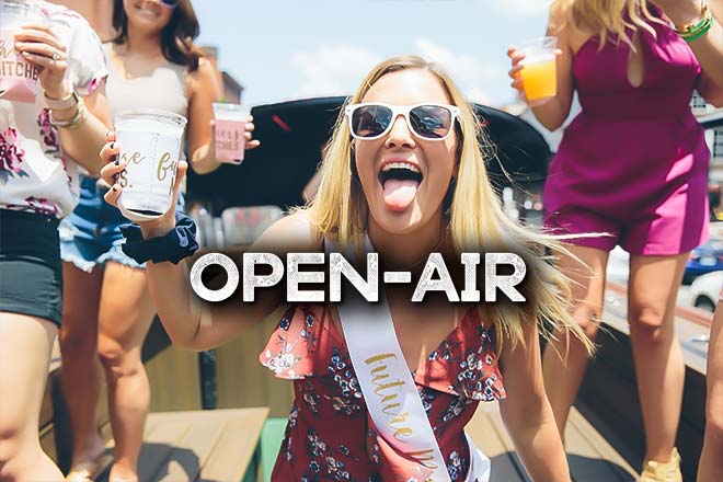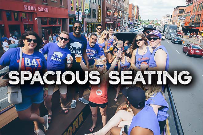Our custom built, open-air party buses, are best described as "Mardi Gras meets Nashville." That's why they call us the ultimate party bus!